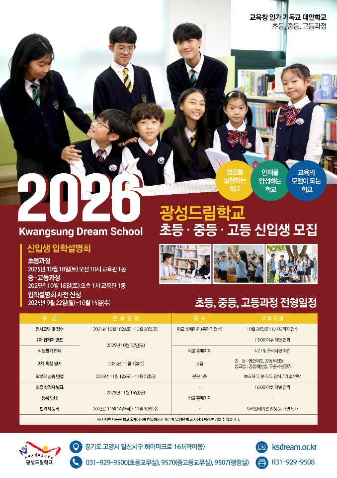 세계를 섬기는 기독인, 광성드림학교입니다!
